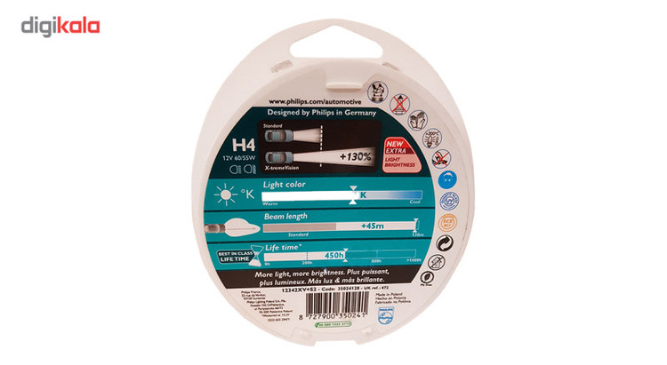 لامپ خودرو فیلیپس مدل H4 X-treme Vision بسته 2 عددی